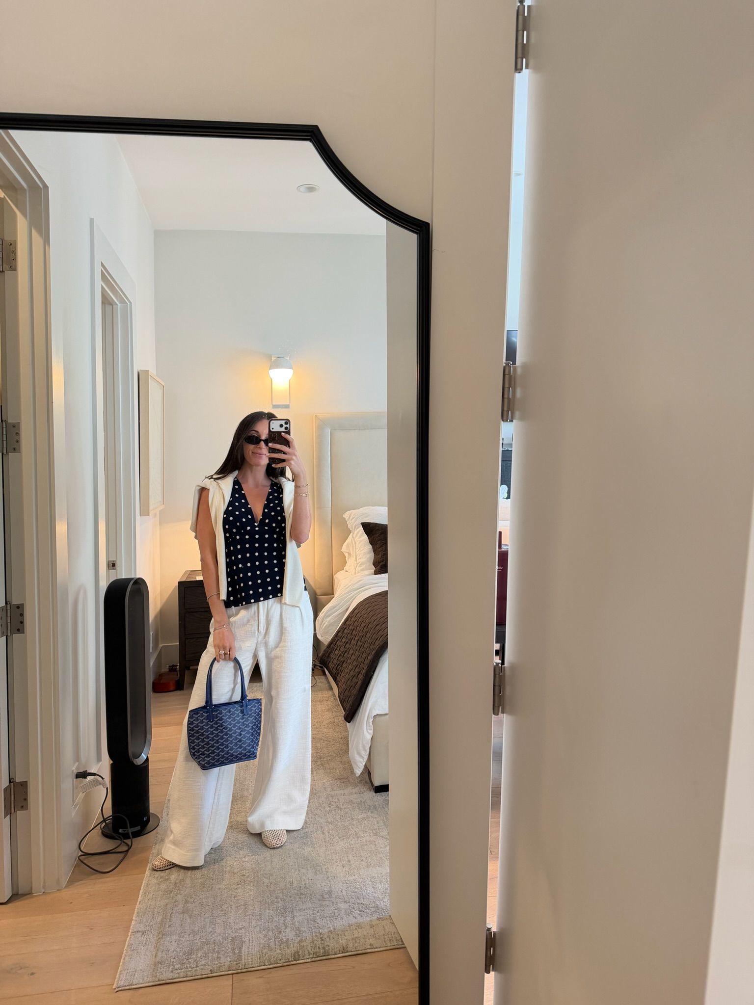 March is giving full July and I simply will not fight it. Currently in a bit of a polka dot era, and this top is the transitional-weather piece I didn't know I needed. I regret to inform you it’s sold out except for in a size large! Wore it with white linen pants (way less expensive than they look) because they’re as comfy as pajamas and not sweaty against an all-day office chair.